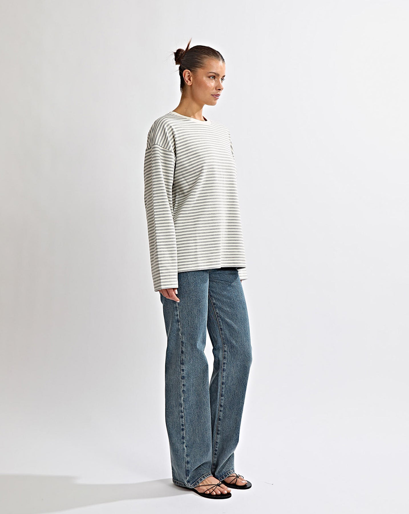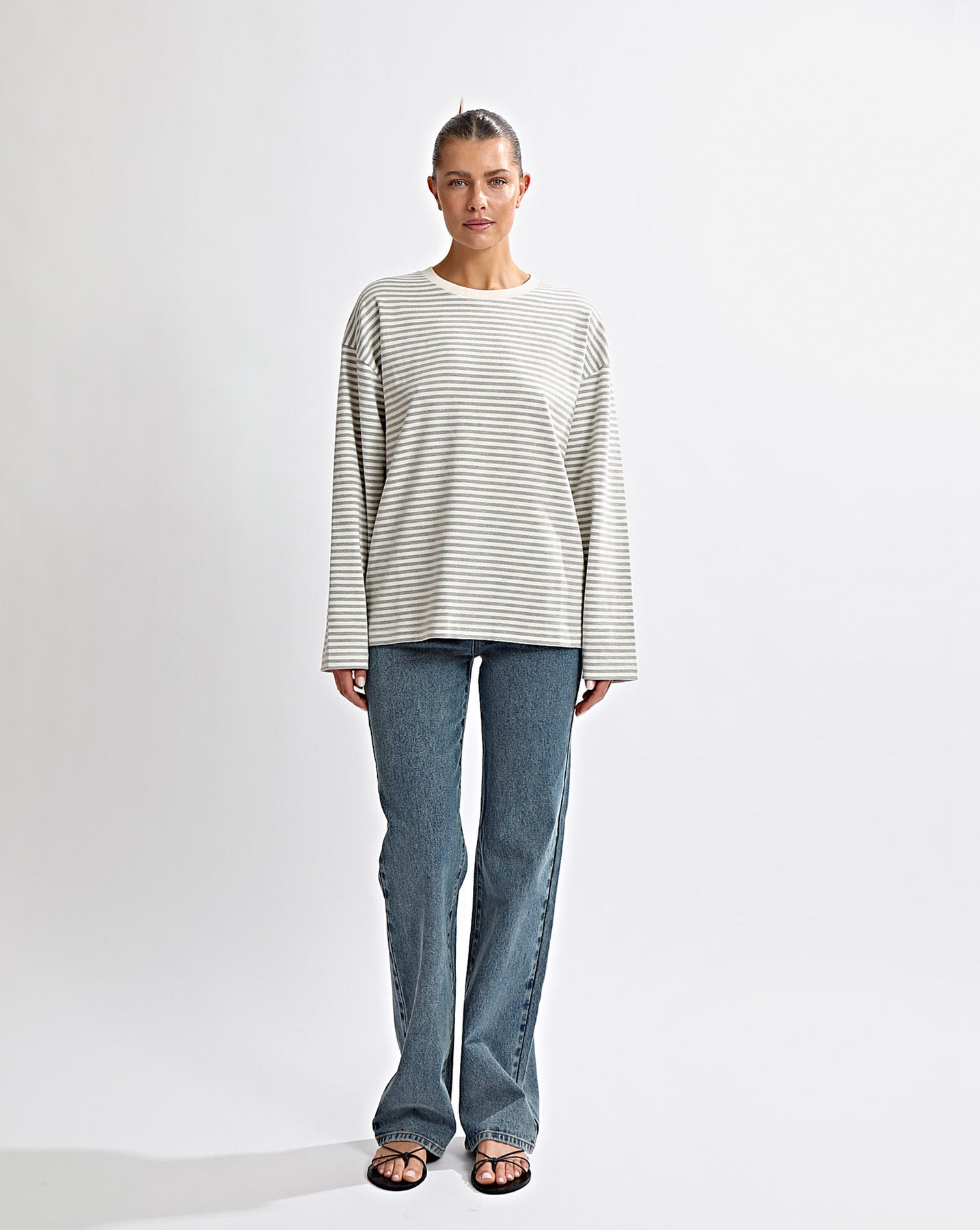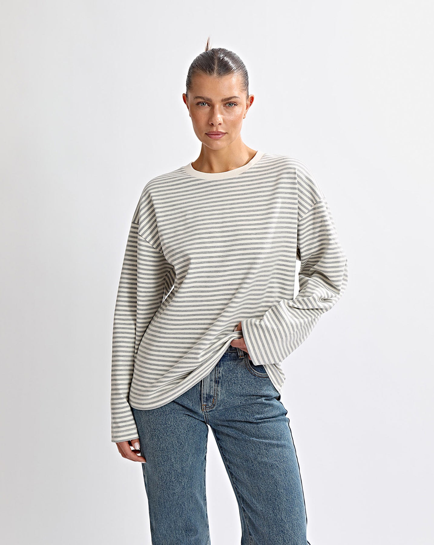 Our Milan fabric is a heavyweight loopback cotton fabric in a classic coffee and cream stripe