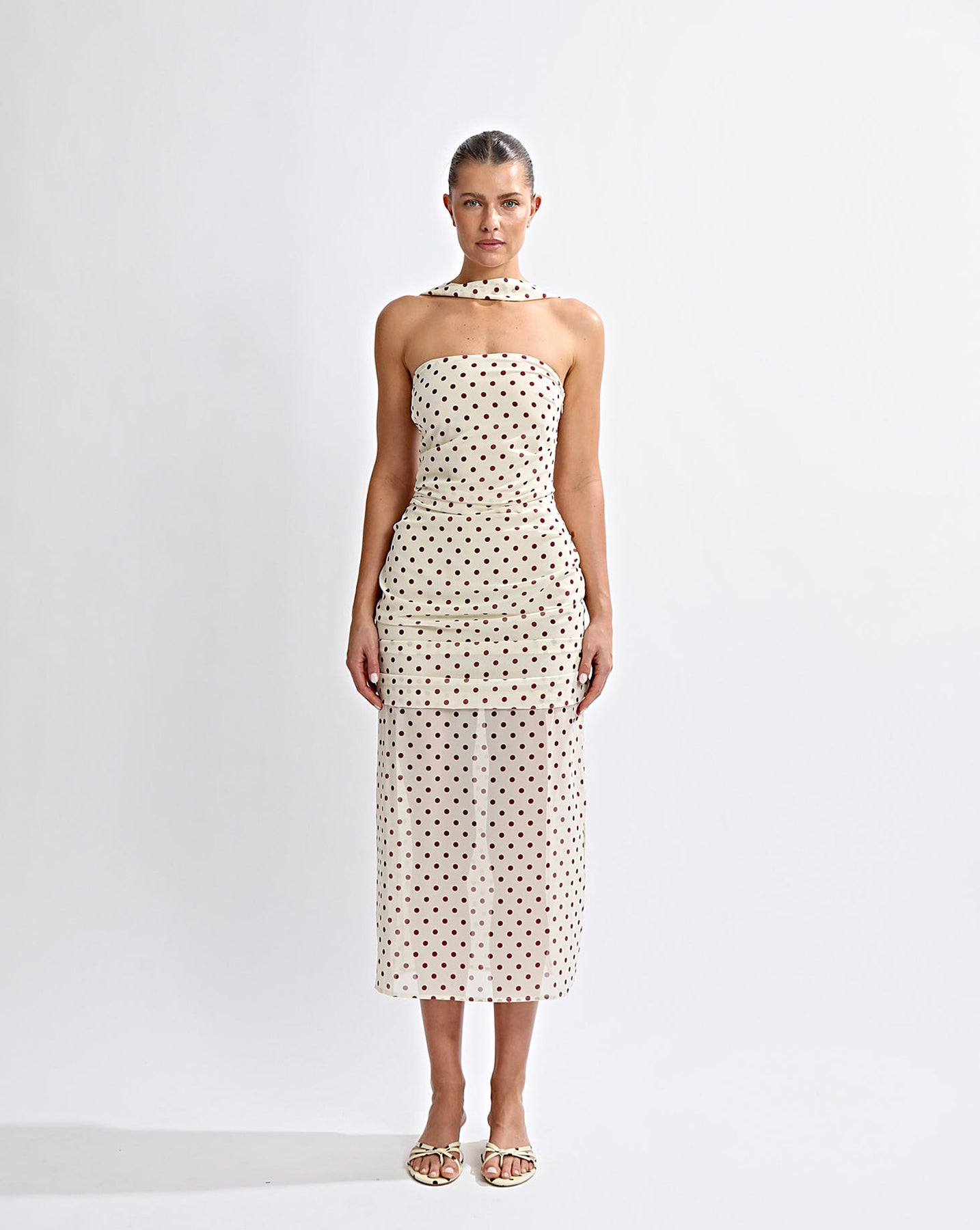 Custom Polka Print with a pale yellow base and accented burgundy spot