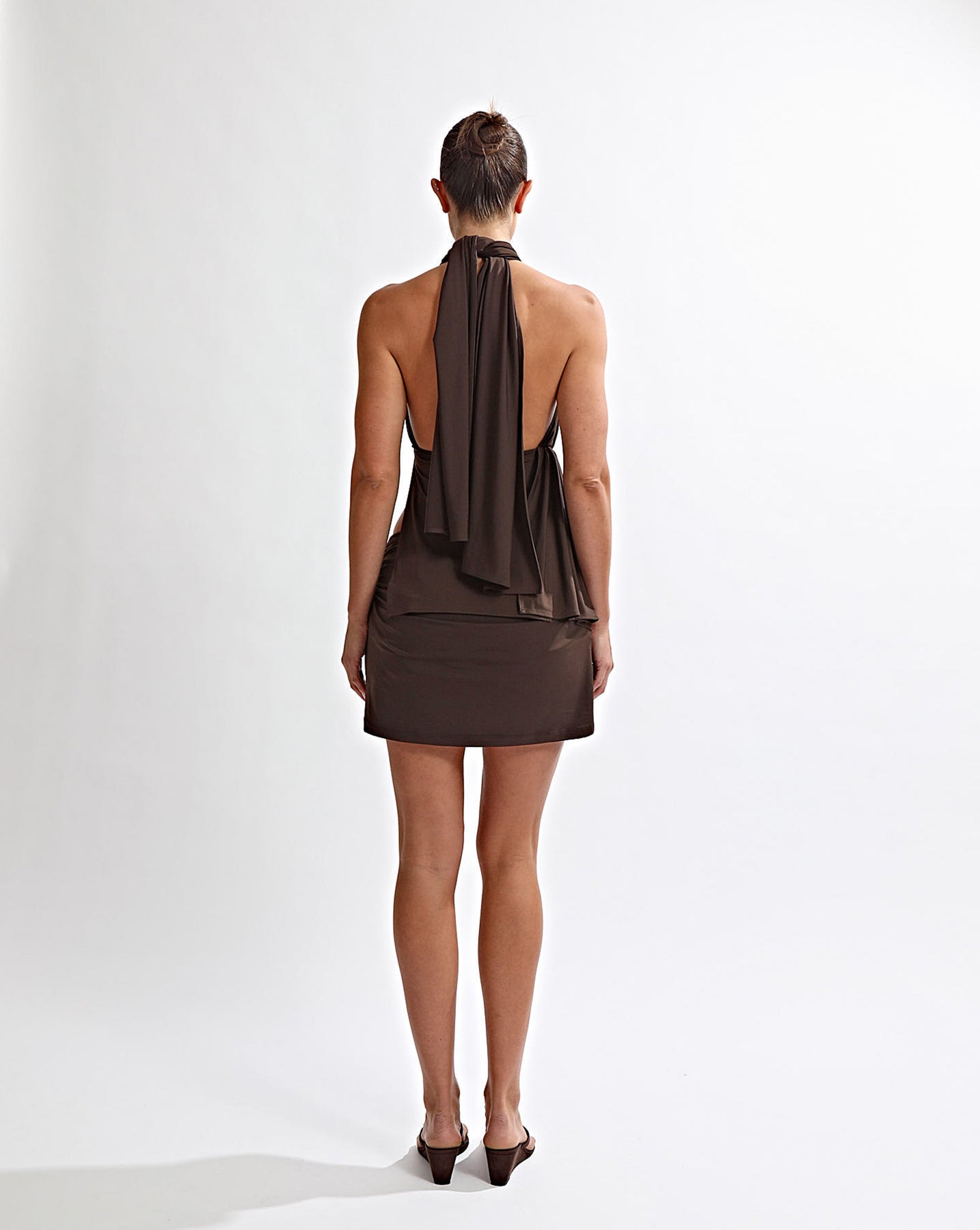 Mini skirt with elastic waistband skirt features flattering ruching around the front and back mid-waist
