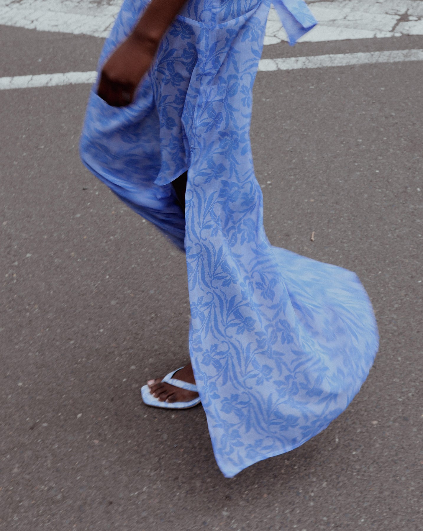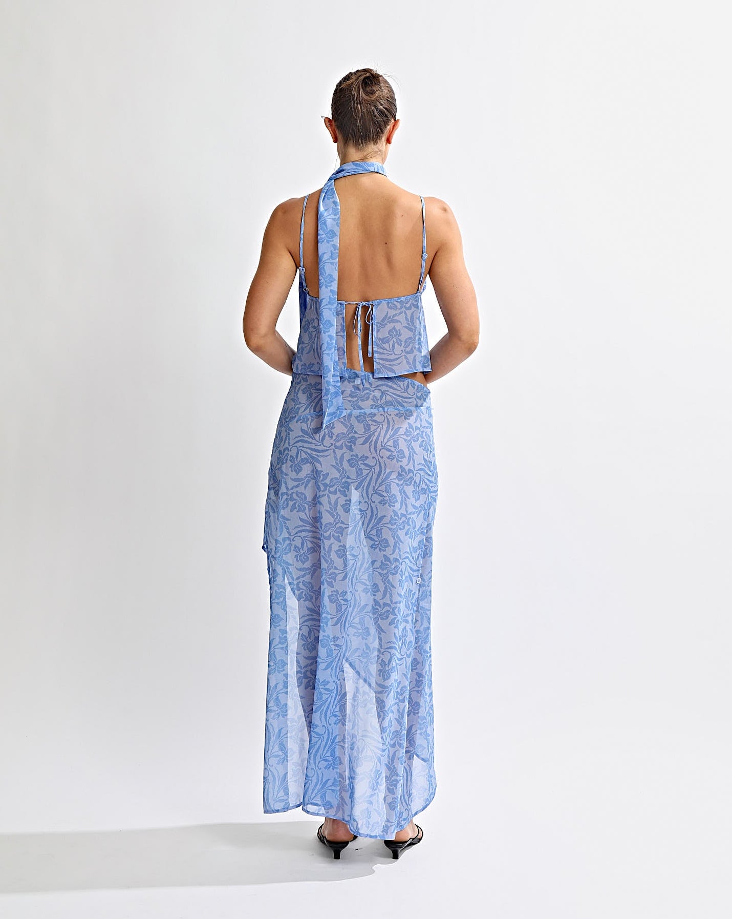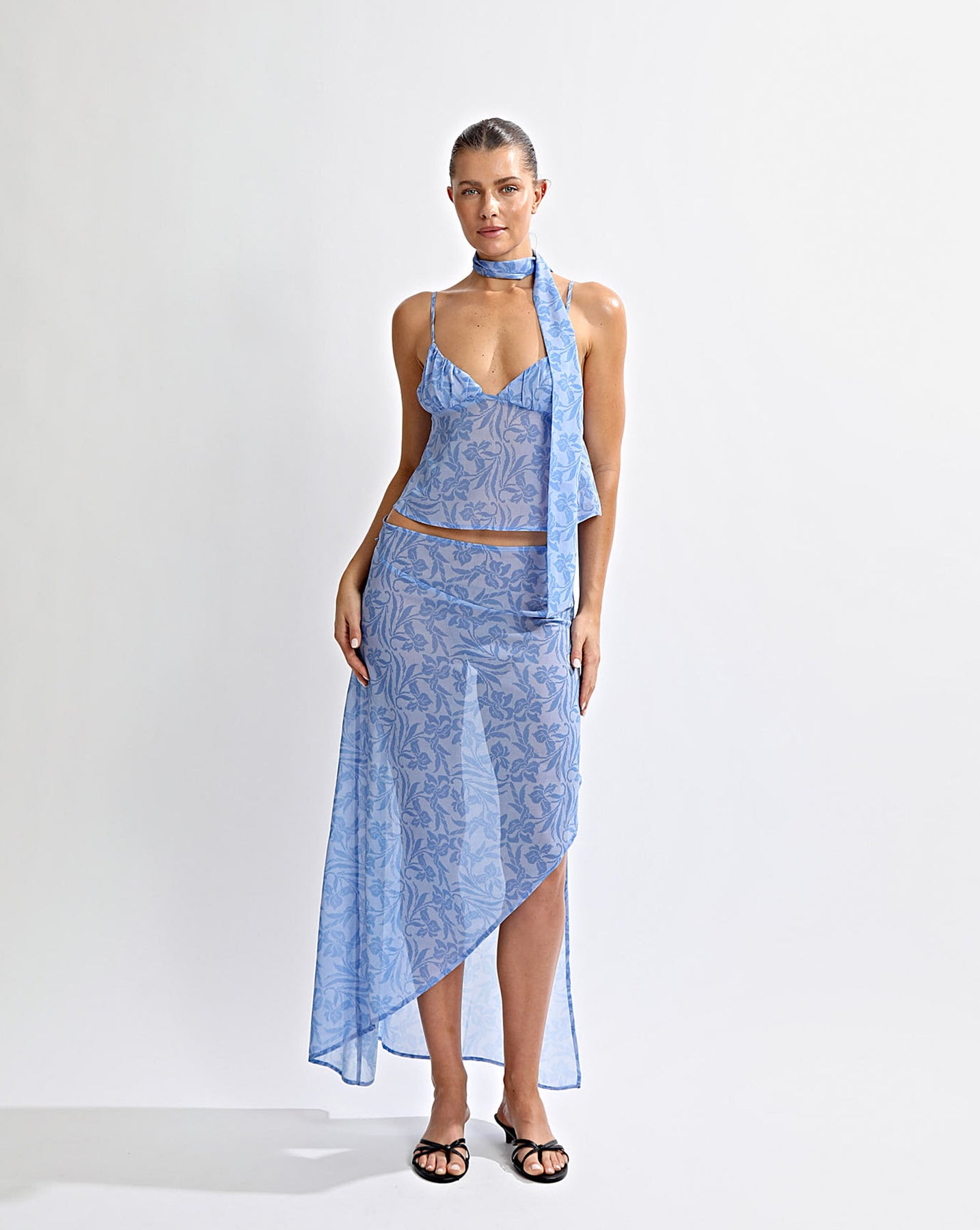 Skirt features a button to make adjustable from full length skirt to a mid length sarong style