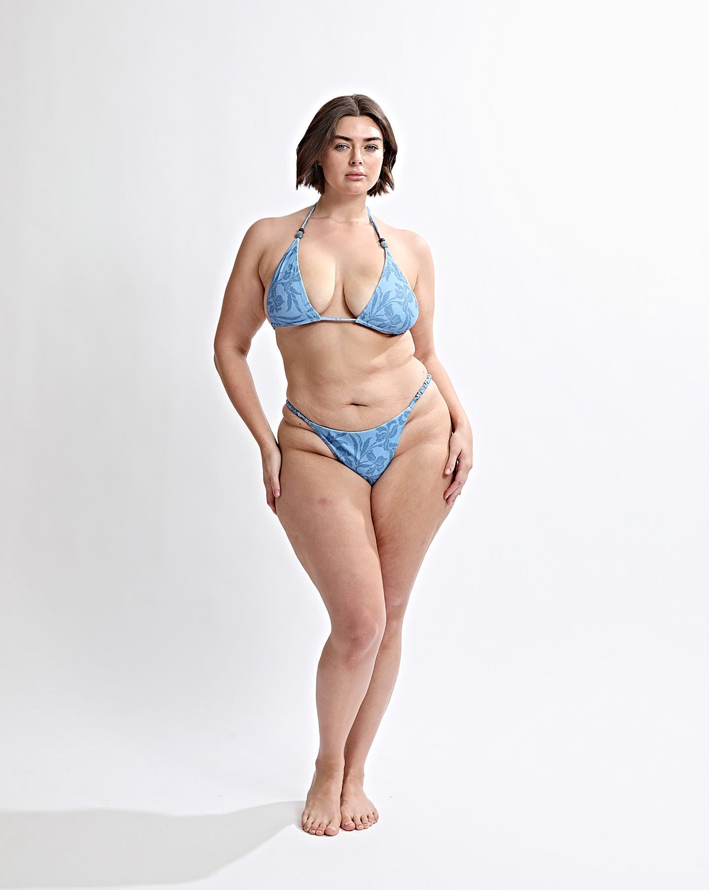 Fully lined bikini bottoms with fixed front and adjustable back waist