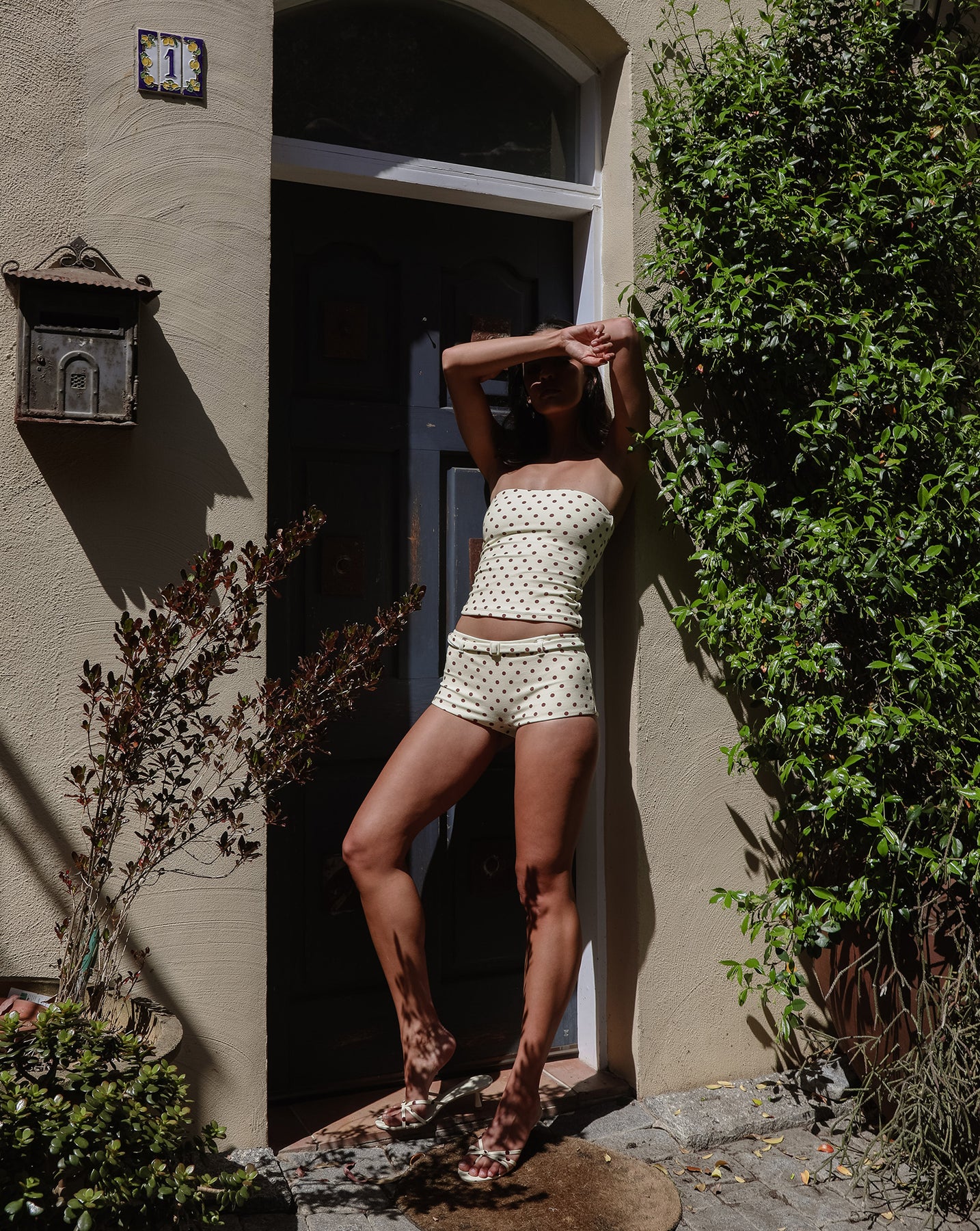 Kristina is 181cm with a 84cm bust, 66cm waist and 99cm hips and wears a size S