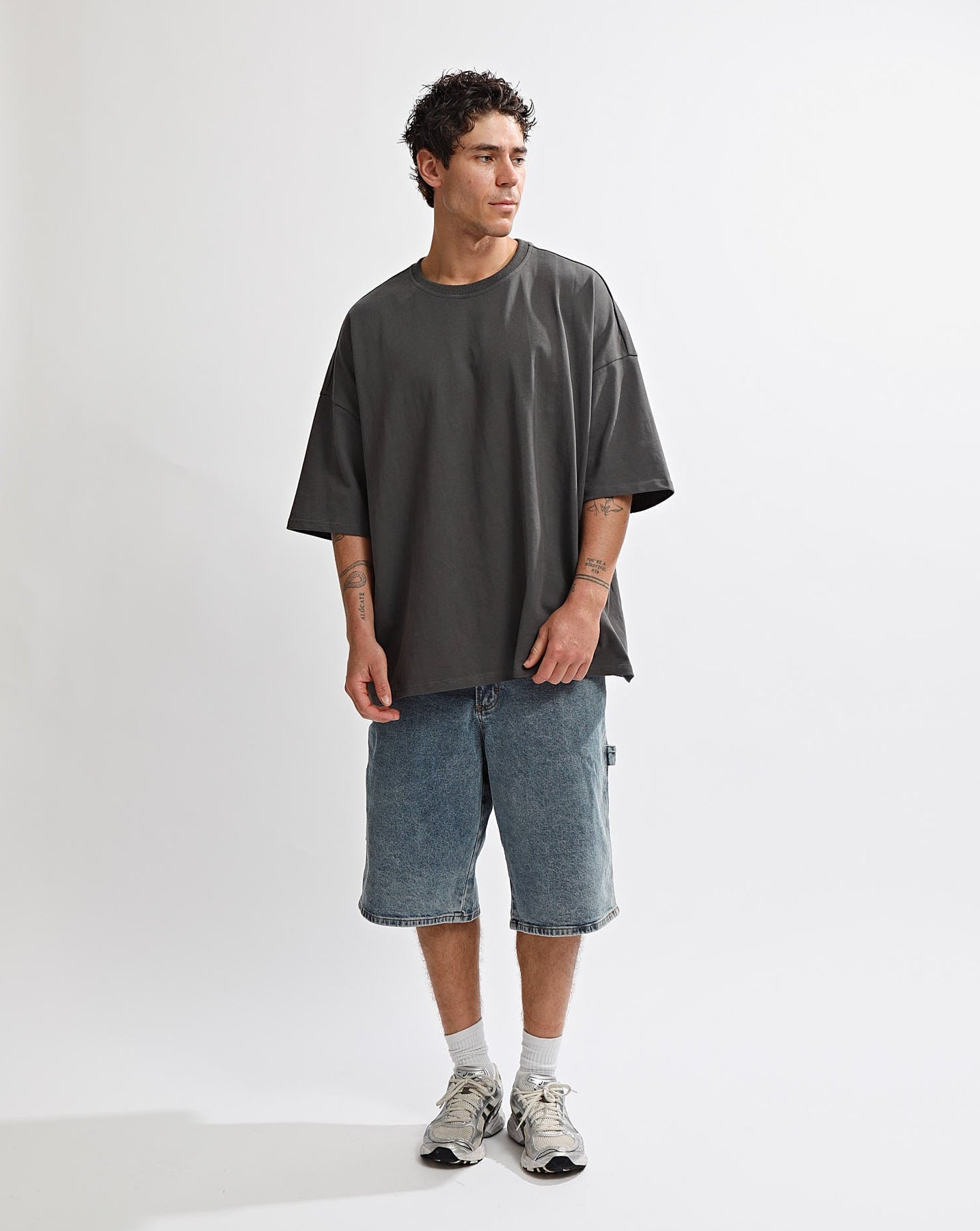 Oversized crewneck, drop shoulder, double turn hem and sleeve finish