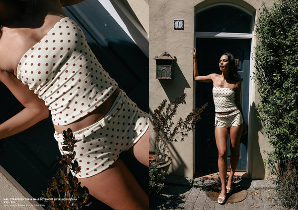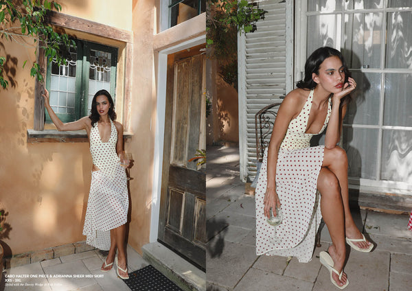Polka dots, buttery textures, baby yellow, and silhouettes made for the romance of the season. A mix of swim, apparel, and evening pieces where soft structure meets playful ease. Timeless prints and feminine lines that move effortlessly from poolside to after dark.