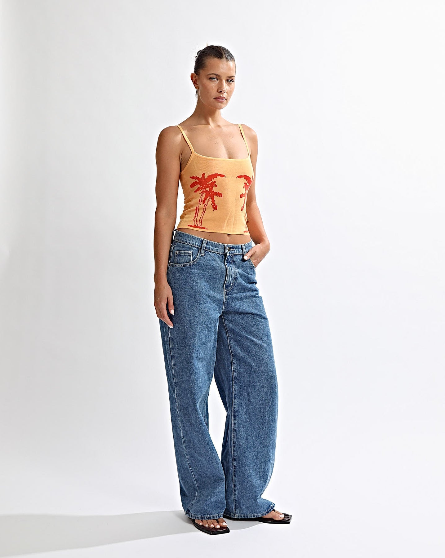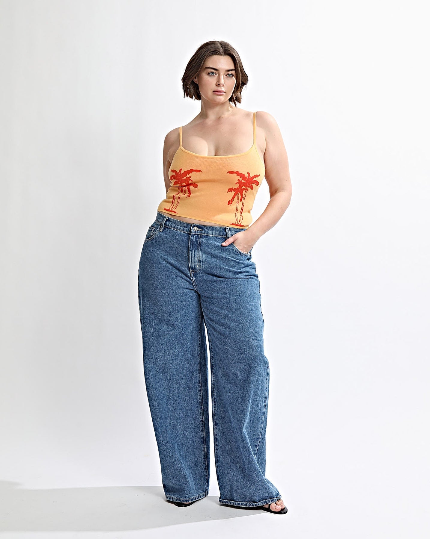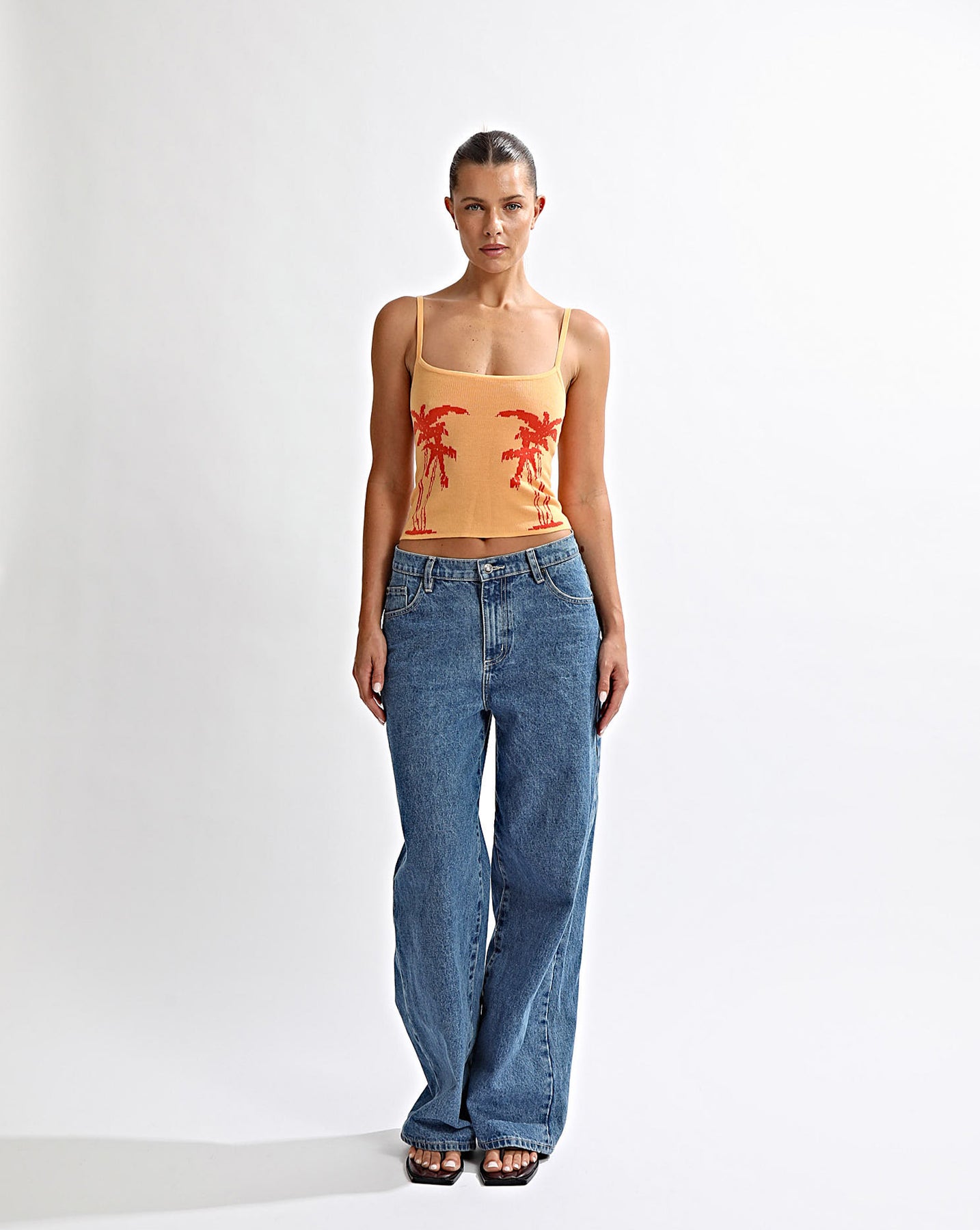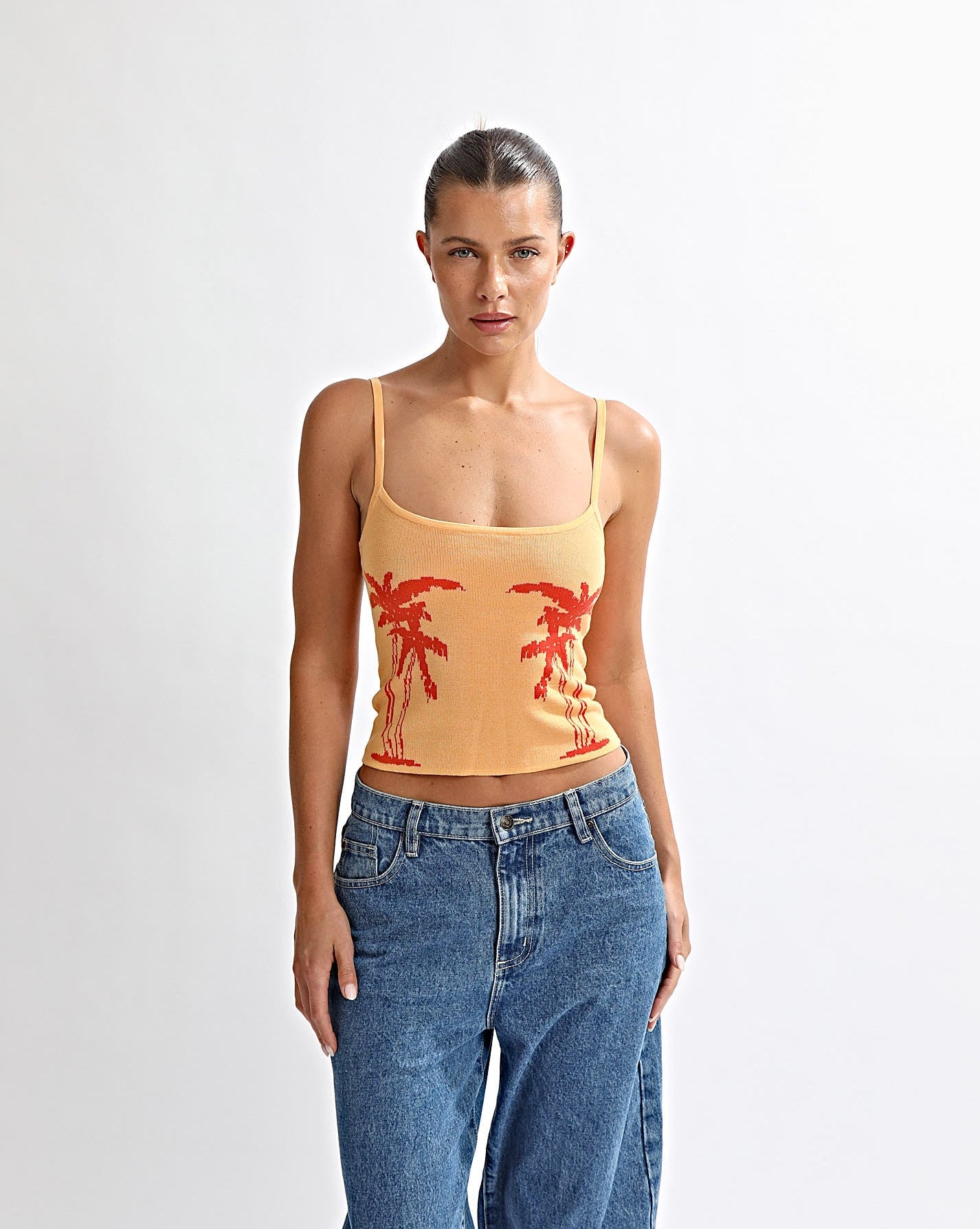 Knit cami top with narrow straps and our Cali palm motif in a contrasted colour