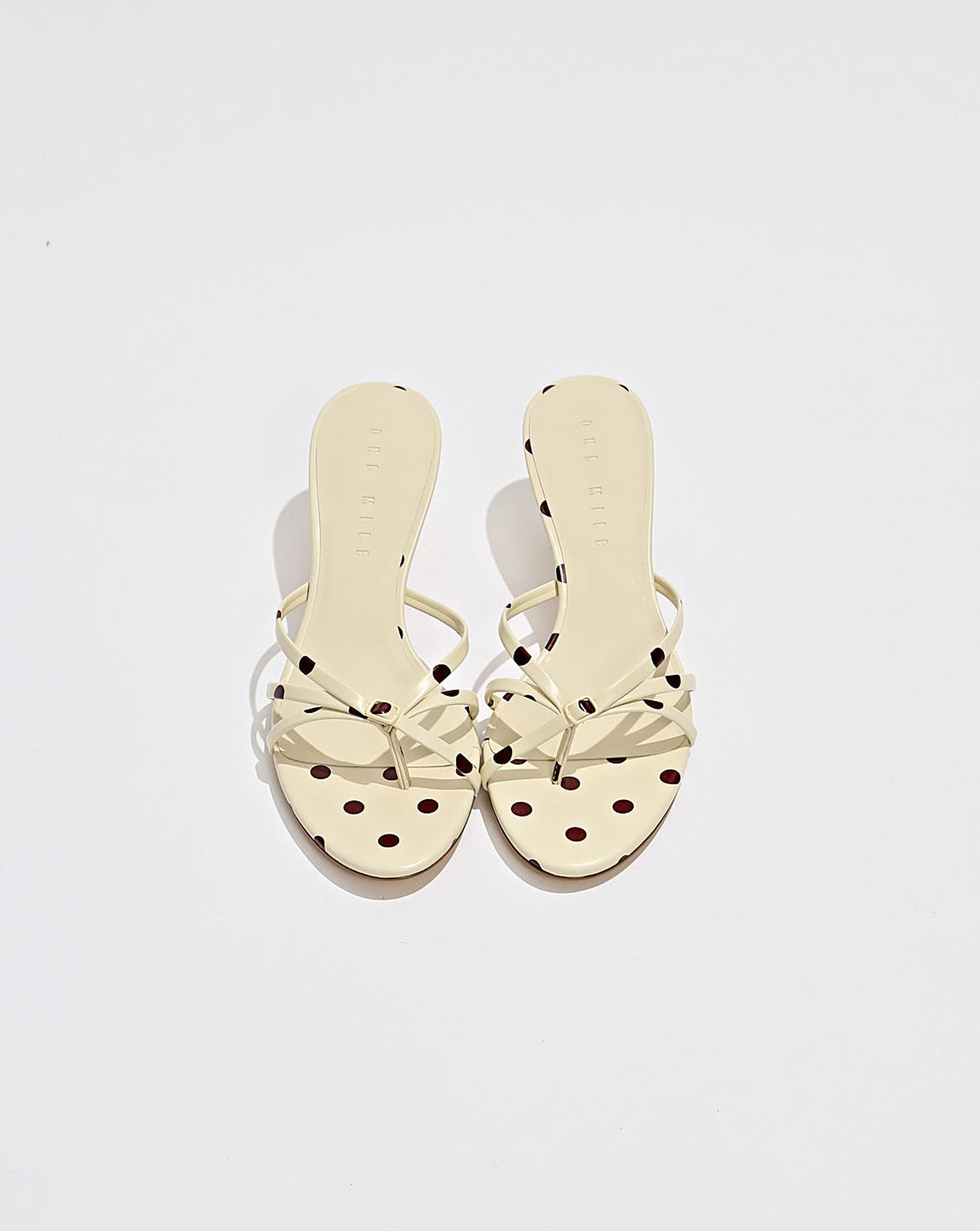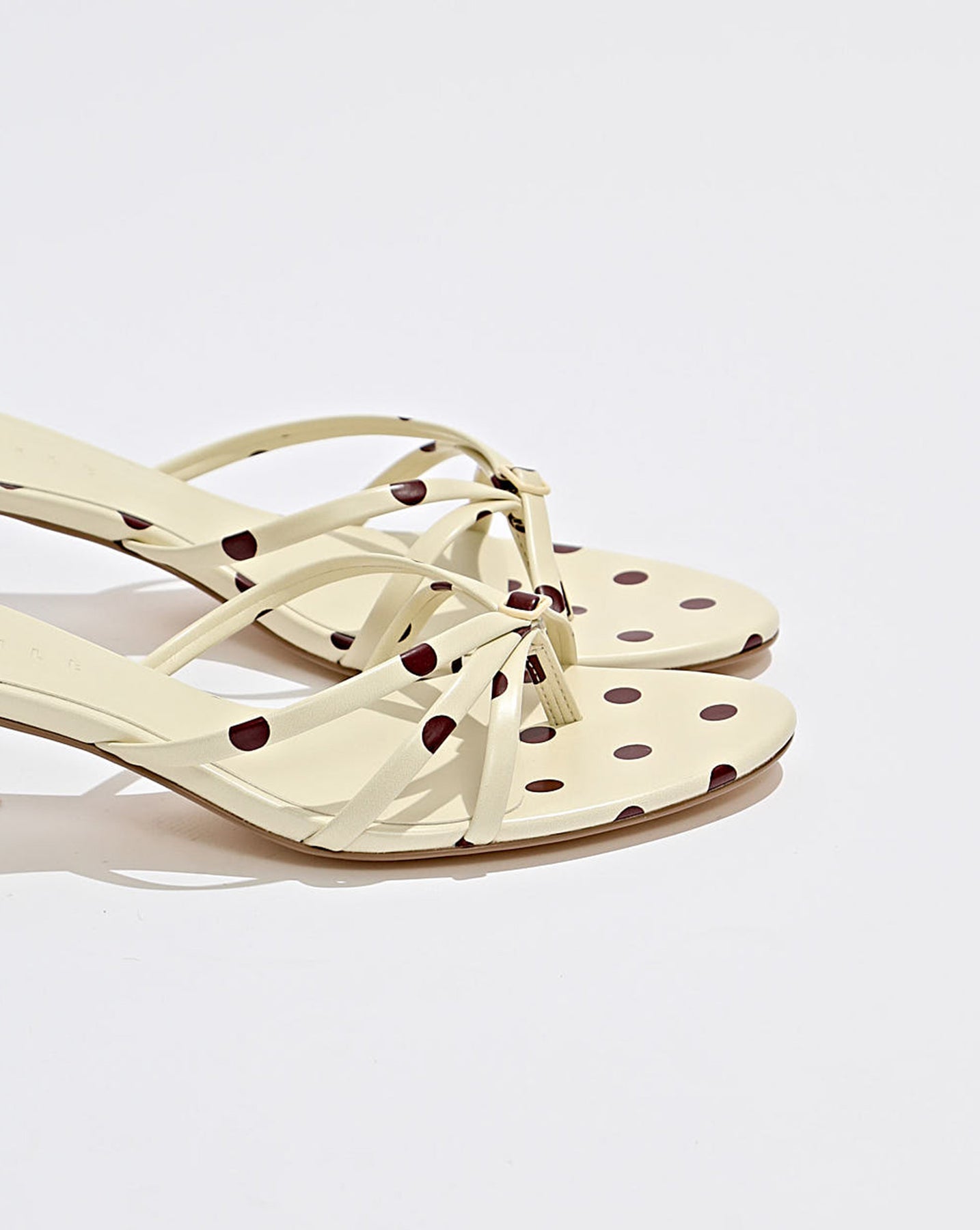 Custom Polka Print with a pale yellow base and accented burgundy spot